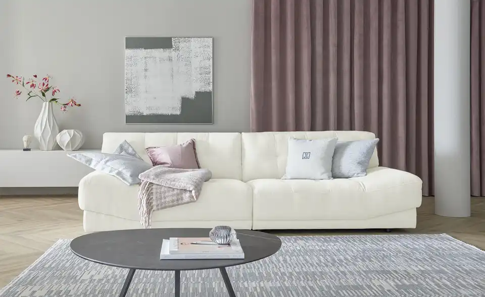 Dieses Markensofa von Jette Home überzeugt durch sein modernes, kombinationsfreudiges Design. Die dick gepolsterte Sitzfläche ist leicht gebogen und erschafft dadurch angedeutete Armlehnen. Zierknöpfe akzentuieren die Sitz- und Rückenfläche, ohne sich aufzudrängen. Individualisieren Sie Ihr neues Sofa im Handumdrehen mit Dekokissen und Kuscheldecken.bewusst wohnen