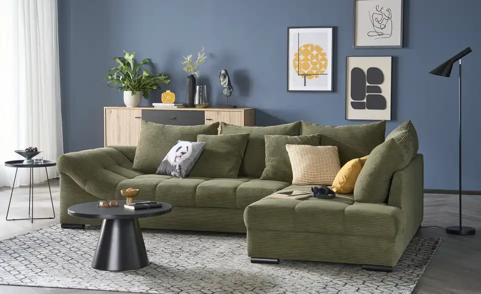 Dieses Ecksofa überzeugt durch beste Komforteigenschaften und einem attraktiven, modernen Design. Der Trendstoff Cord umspannt das ganze Sofa, sodass Sie es auch problemlos mittig im Raum oder als Raumtrenner platzieren können. Machen Sie es sich bequem und strecken Sie sich auf der Ottomane aus. Dank der Kombination aus Wellenunterfederung und Polyätherschaum sitzen Sie überall bequem. Die geschwungene Armlehne und zwe mitgelieferte Zierkissen sorgen für ein Plus an Gemütlichkeit. Außerdem praktisch: Verwandeln Sie das Sofa im Handumdrehen in eine Schlafgelegenheit. So können spontan bis zu zwei Personen bei Ihnen übernachten.Lieferung & Versand