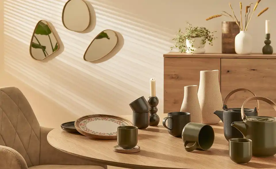 - Olivgrünes Porzellan mit Effektglasur