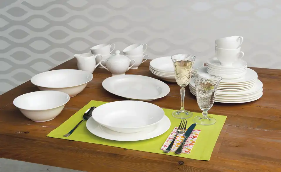 - Lieferumfang / mitgeliefertes Zubehör6x Speiseteller6x Suppenteller6x Dessertteller6x Kaffeetasse6x Kaffeeuntertasse2x Schale1x Servierplatte1x Zuckerdose1x Milchkännchen
