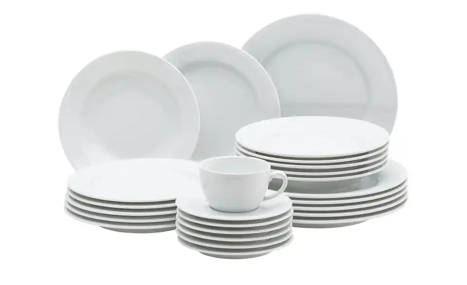 Mit dem Kombiservice Basic aus Porzellan sind Sie jederzeit gut ausgestattet, wenn es darum geht, Ihre Lieben zu bewirten. Das 30-teilige weiße Service mit seinem schlichten und zugleich eleganten Design bereichert Ihre Tafel und ist darüber hinaus schnell und einfach in der Spülmaschine zu reinigen.bewusst wohnen