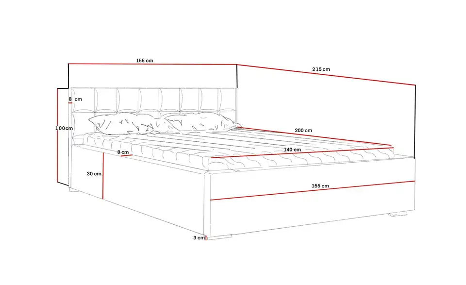- Lieferumfang / mitgeliefertes ZubehörPolsterbett mit Bettkasten, Kopfteil, Lattenrost und Füße inkl. Anleitung