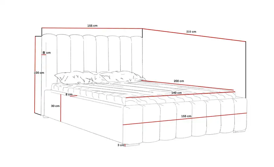 - Lieferumfang / mitgeliefertes ZubehörPolsterbett mit Bettkasten, Kopfteil, Lattenrost und Füße inkl. Anleitung