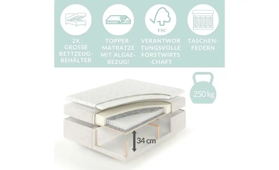 - Mehr zu Ausstattung / FunktionTaschenmatratze Stauraum Visco-Schaum-Topper