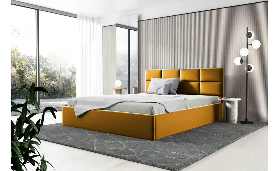 - Ausstattung / FunktionBettkastenöffnung am Fußteilinnen liegender Bettkastenmit GasdruckfederKopfteil rundherum bezogen