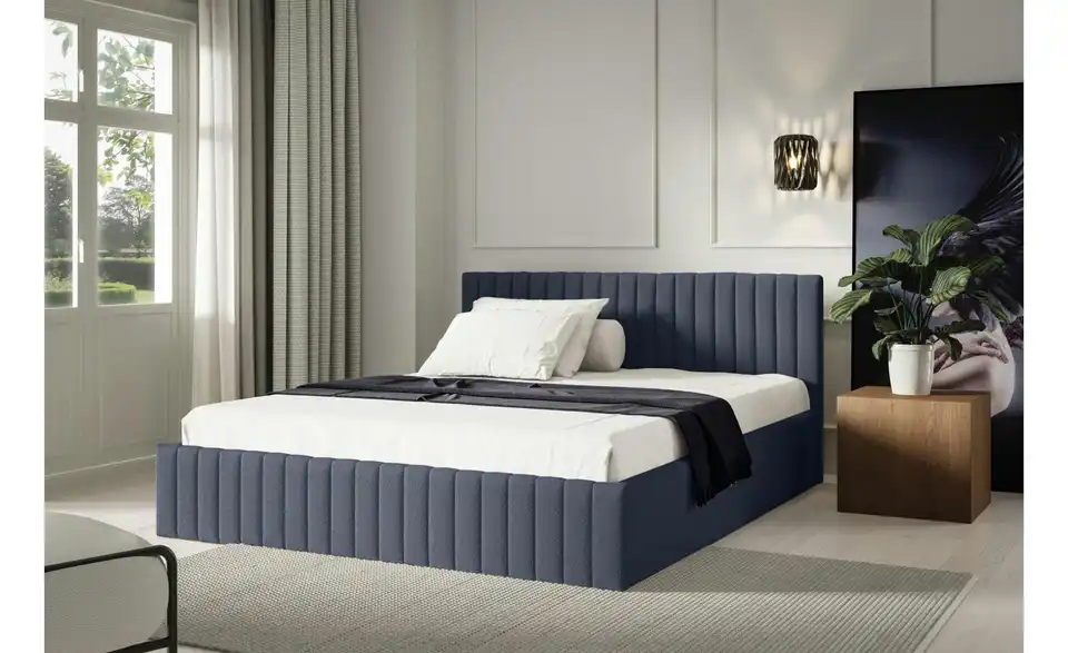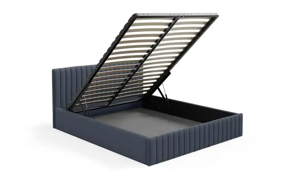 - Ausstattung / FunktionBettkastenöffnung am Fußteilinnen liegender Bettkastenmit GasdruckfederKopfteil rundherum bezogen
