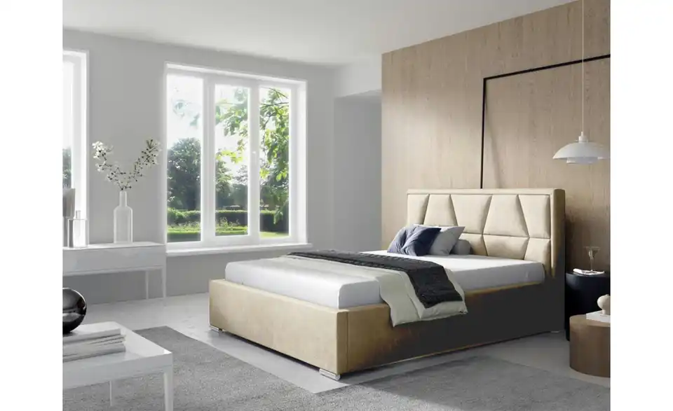 - Ausstattung / FunktionBettkastenöffnung am Fußteilinnen liegender Bettkastenmit GasdruckfederKopfteil rundherum bezogen
