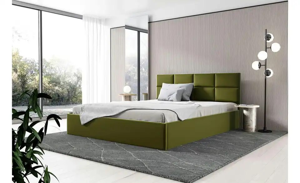 - Ausstattung / FunktionBettkastenöffnung am Fußteilinnen liegender Bettkastenmit GasdruckfederKopfteil rundherum bezogen