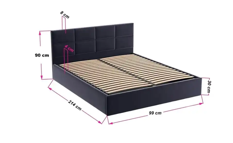 - Ausstattung / FunktionBettkastenöffnung am Fußteilinnen liegender Bettkastenmit GasdruckfederKopfteil rundherum bezogen