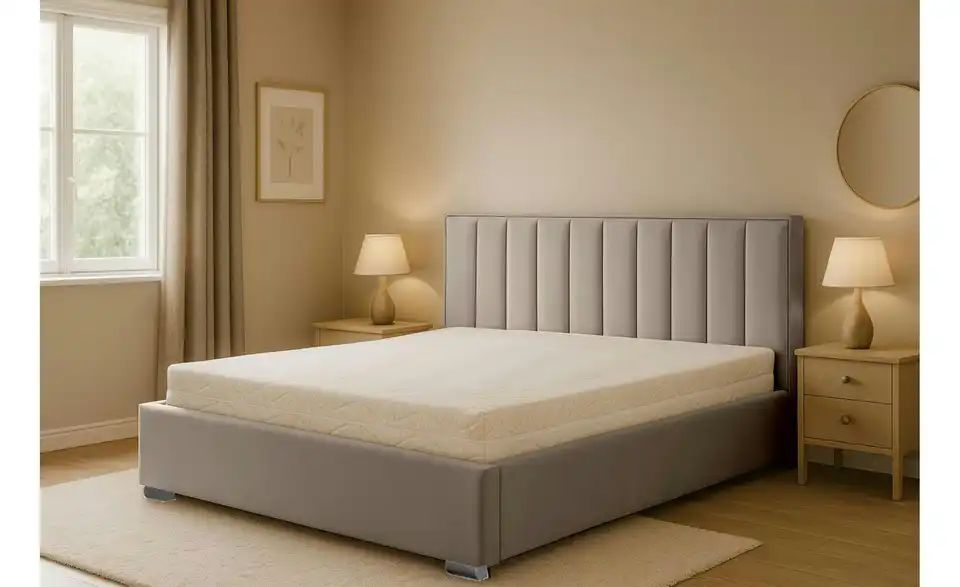 - Ausstattung / FunktionBettkastenöffnung linksBettkastenöffnung rechtsinnen liegender Bettkastenmit GasdruckfederKopfteil rundherum bezogen