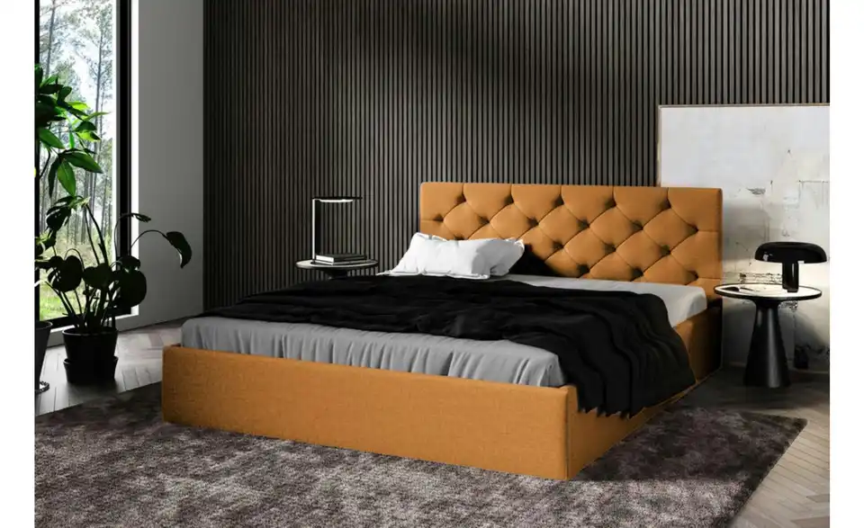 - Ausstattung / FunktionBettkastenöffnung am Fußteilinnen liegender Bettkastenmit GasdruckfederKopfteil rundherum bezogen