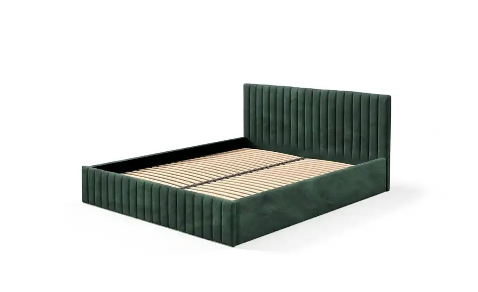 - Ausstattung / FunktionBettkastenöffnung am Fußteilinnen liegender Bettkastenmit GasdruckfederKopfteil rundherum bezogen