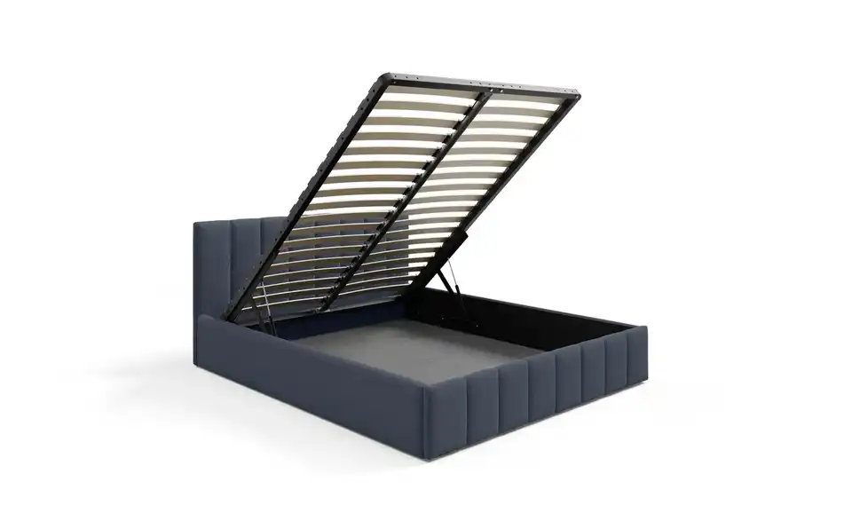 - Ausstattung / FunktionBettkastenöffnung linksBettkastenöffnung rechtsinnen liegender Bettkastenmit GasdruckfederKopfteil rundherum bezogen