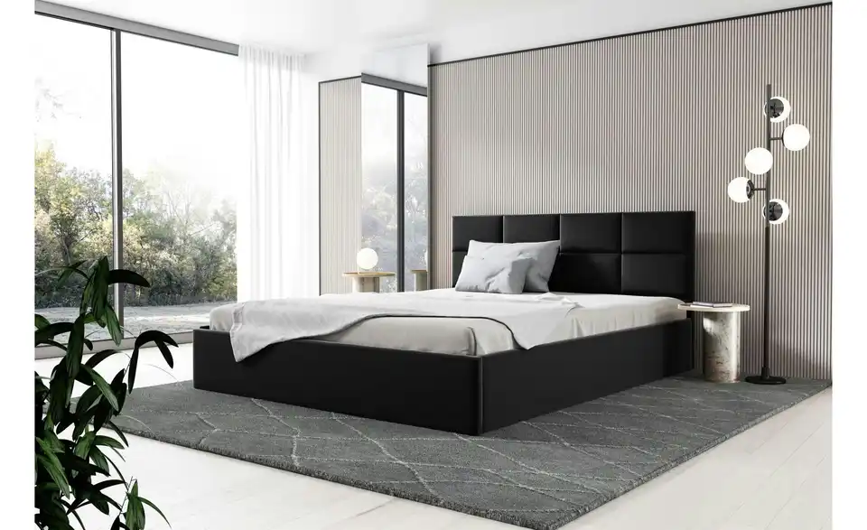 - Ausstattung / FunktionBettkastenöffnung am Fußteilinnen liegender Bettkastenmit GasdruckfederKopfteil rundherum bezogen