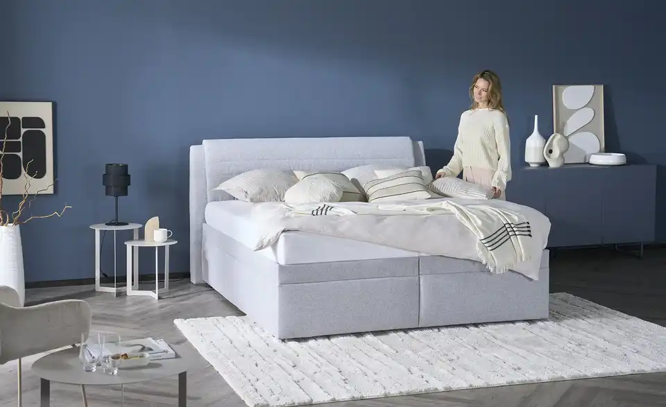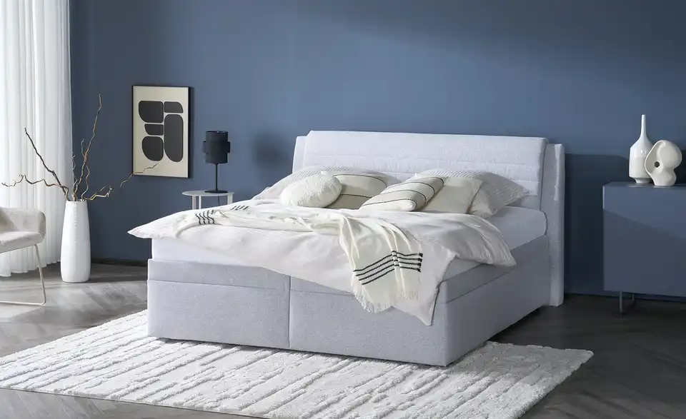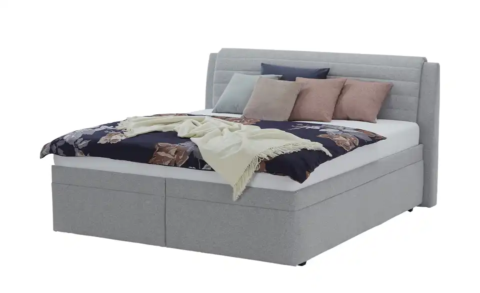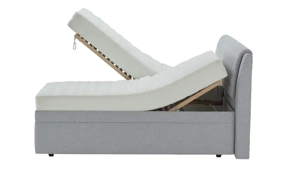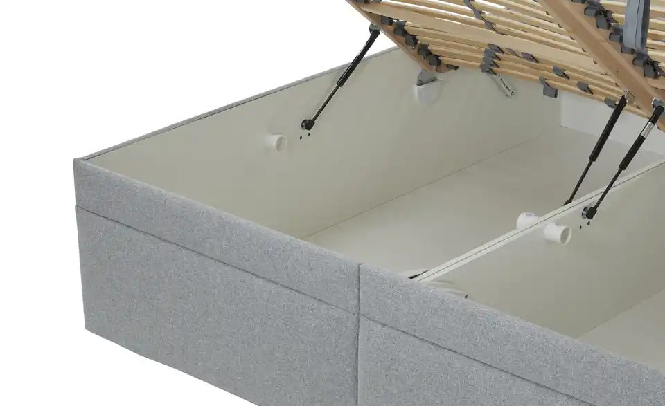 - Ausstattung / Funktioninnen liegender BettkastenBettkastenöffnung am Fußteilmit Gasdruckfedermanuelle Kopfteilverstellungmanuelle Fußteilverstellung