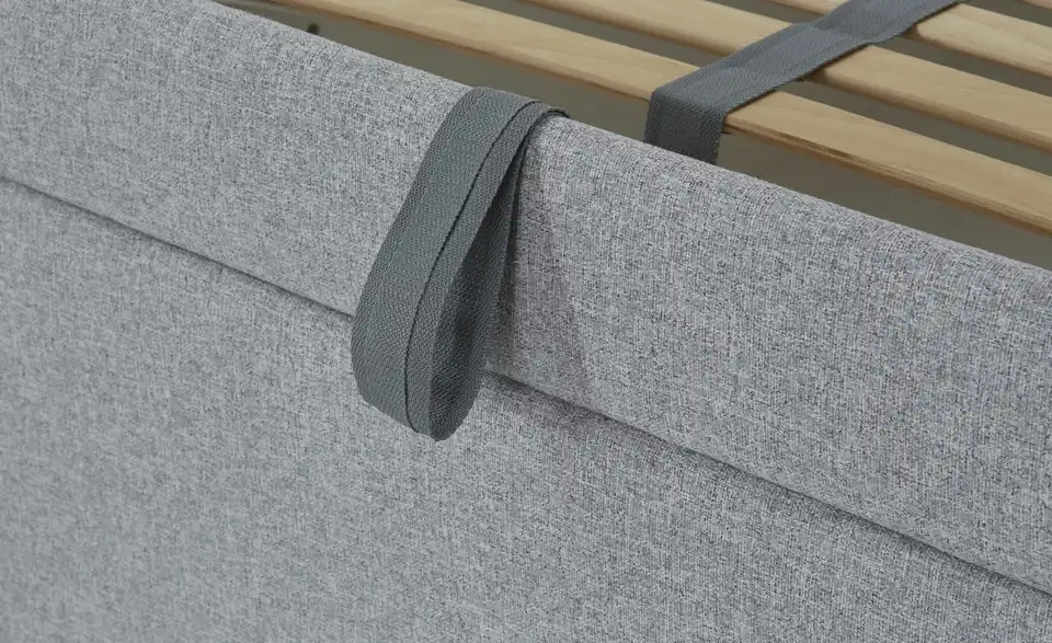 Bei diesem Polsterbett sind Komfort und praktischer Nutzen perfekt aufeinander abgestimmt. Das gesamte Gestell ist mit einem strapazierfähigen Bezug aus robustem Webstoff bezogen und dadurch pflegeleicht. Das Kopfteil ist dick gepolstert und mit einem zusätzlichen Schutz-Latz aus Flachgewebe versehen. Dieser kann bei Bedarf abgenommen und gewaschen werden. Unter der Liegefläche befindet sich außerdem praktischer Stauraum, in dem Winterbettwäsche, Kissen und anderes verstaut werden kann. Dank der Gasdruckfeder und der Schlaufe, die direkt am Fußteil des mitgelieferten Lattenrahmen befestigt ist, können Sie jederzeit und ohne großen Kraftaufwand an den Bettkasten gelangen.Lieferung & Versand