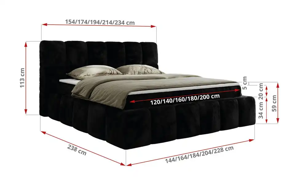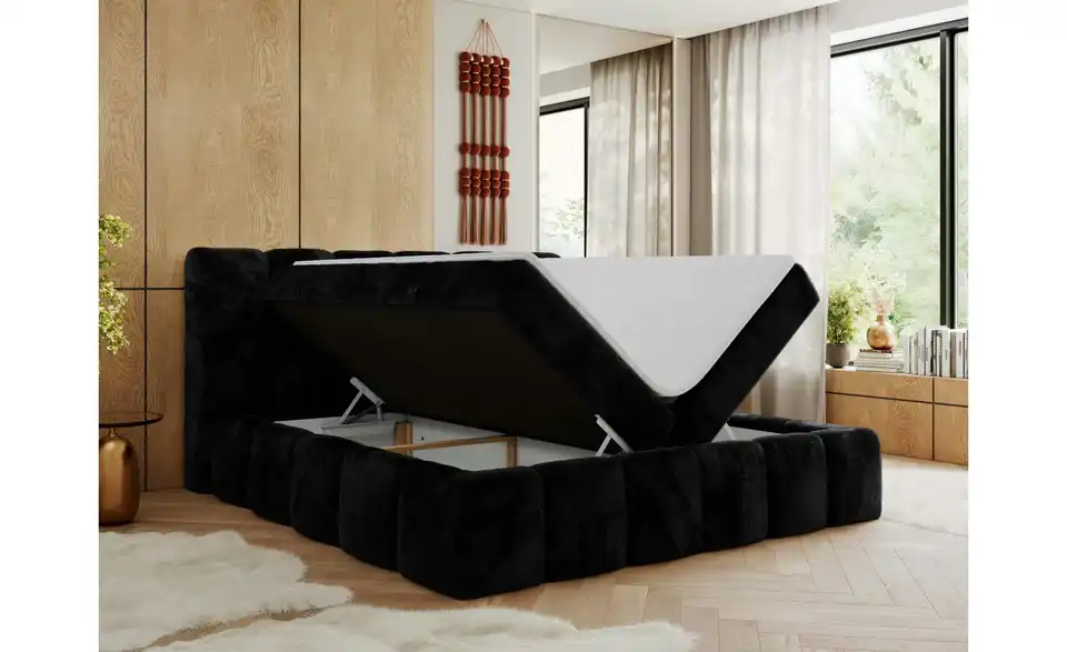 - Lieferumfang / mitgeliefertes ZubehörSchwarzes Polsterbett mit Bettkasten 180x200 cm