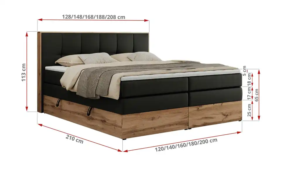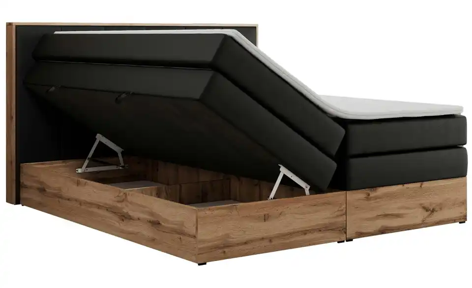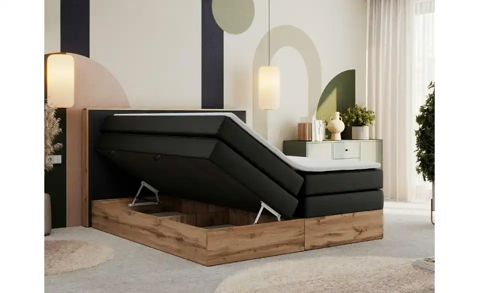 - Lieferumfang / mitgeliefertes ZubehörSchwarzes Boxspringbett mit Bettkasten 120x200 cm