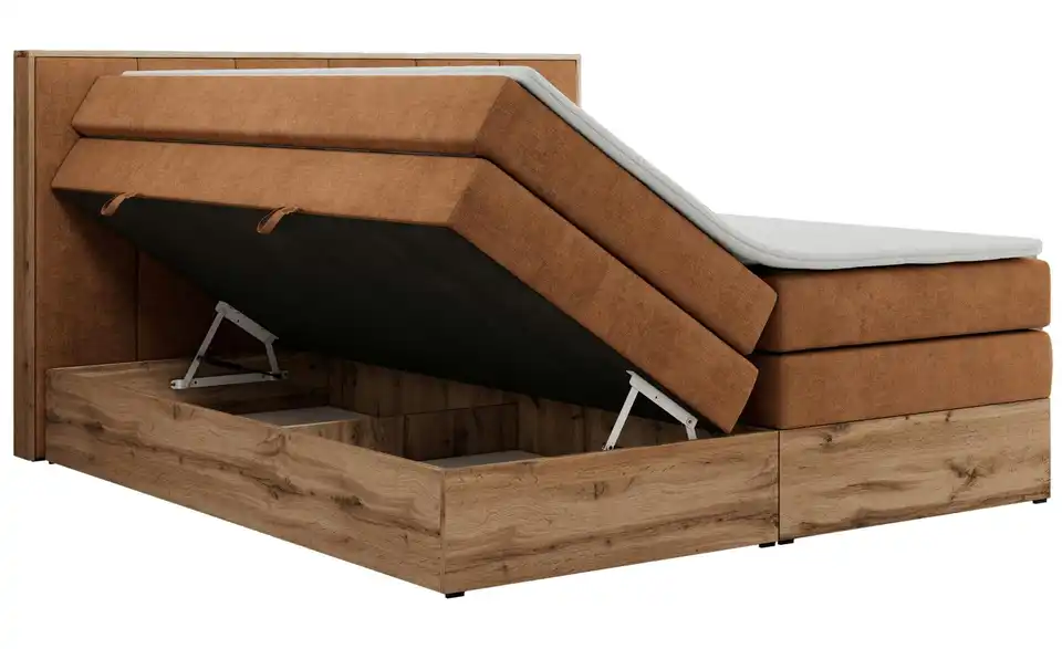 - Lieferumfang / mitgeliefertes ZubehörOrangenes Boxspringbett mit Bettkasten 120x200 cm
