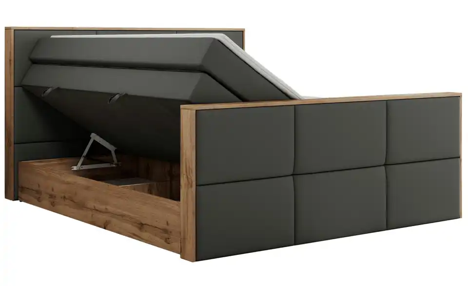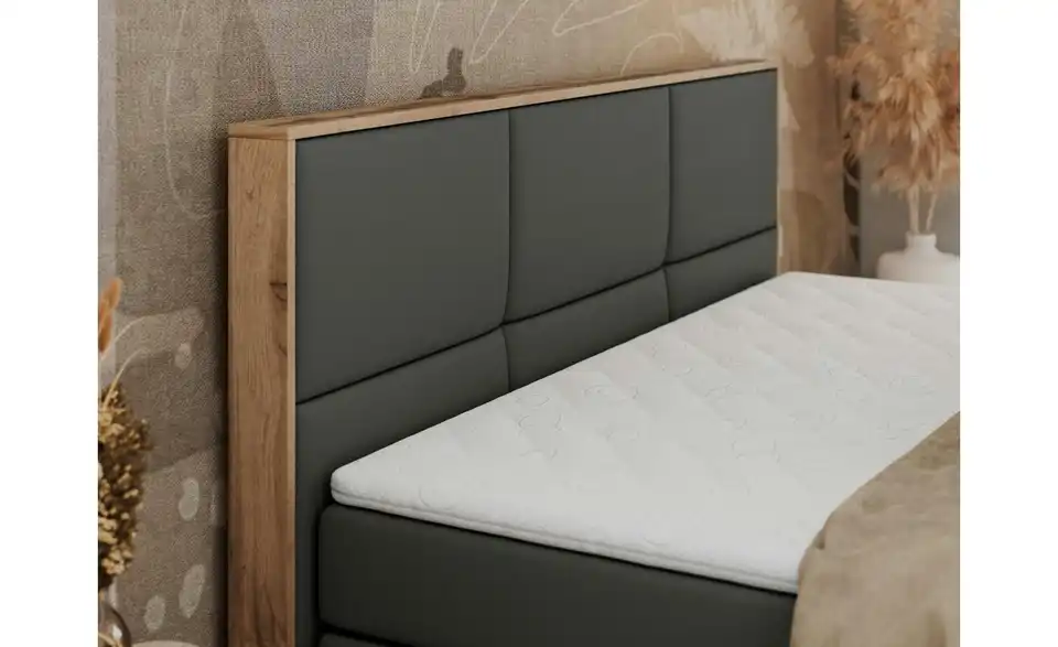 - Lieferumfang / mitgeliefertes ZubehörAnthrazitfarbenes Boxspringbett mit Bettkasten 200x200 cm