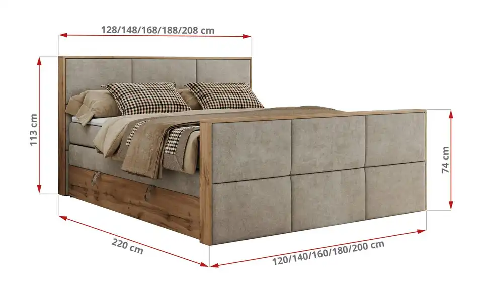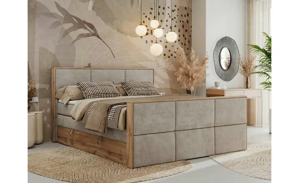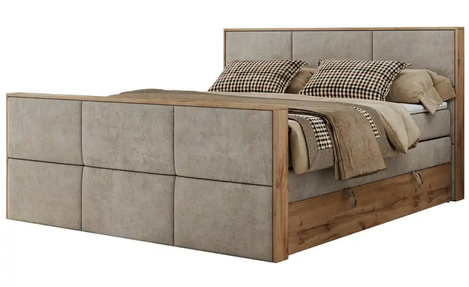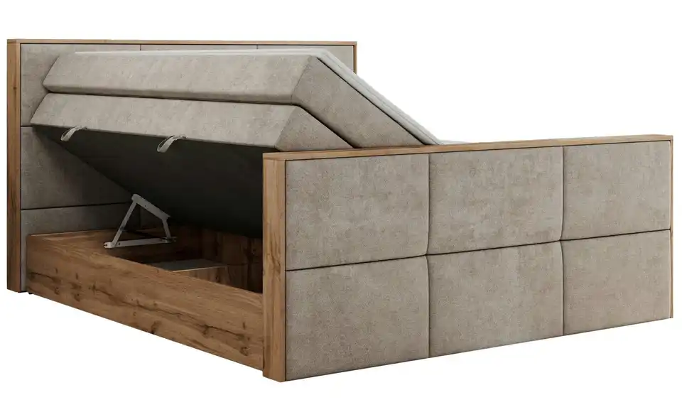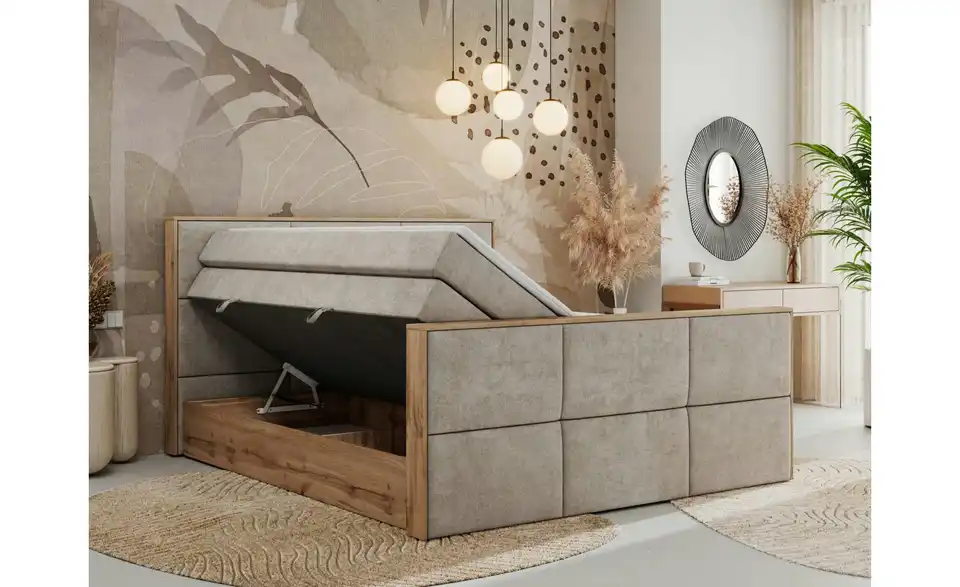 - Lieferumfang / mitgeliefertes ZubehörBeiges Boxspringbett mit Bettkasten 120x200 cm