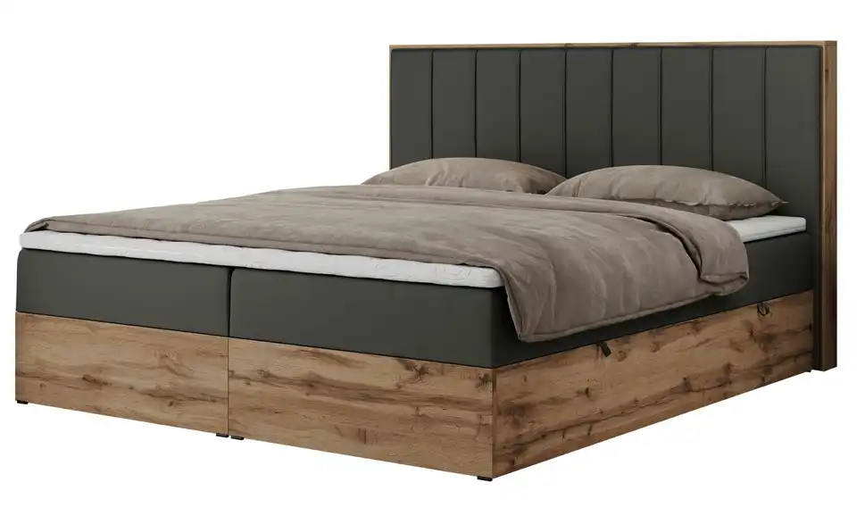 - Lieferumfang / mitgeliefertes ZubehörAnthrazitfarbenes Polsterbett mit Bettkasten 140x200 cm
