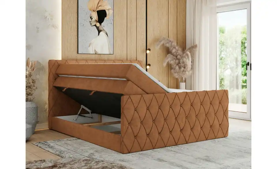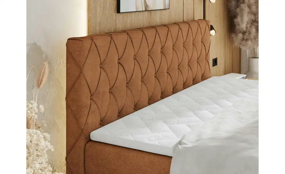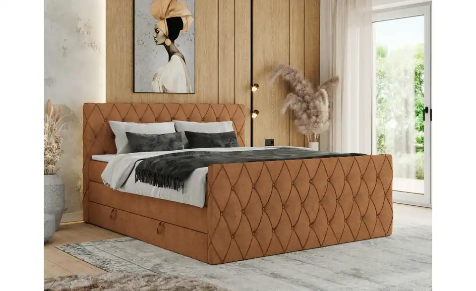 - Lieferumfang / mitgeliefertes ZubehörOrangenes Boxspringbett mit Bettkasten 160x200 cm