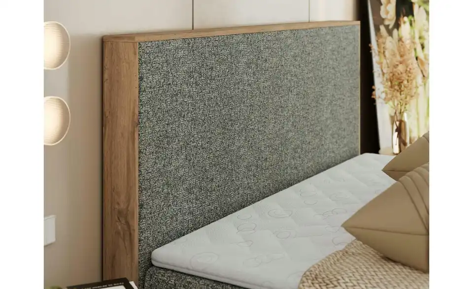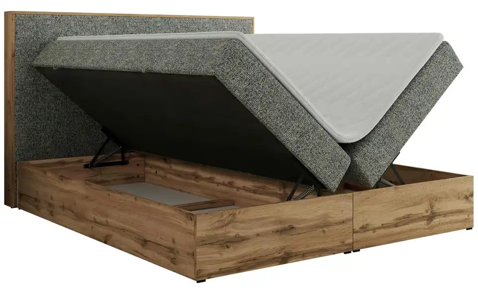 - Lieferumfang / mitgeliefertes ZubehörGraues Polsterbett mit Bettkasten 160x200 cm