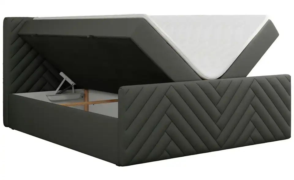 - Lieferumfang / mitgeliefertes ZubehörAnthrazitfarbenes Polsterbett mit Bettkasten 120x200 cm