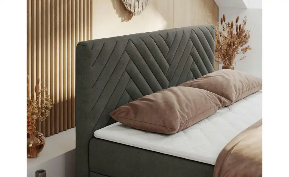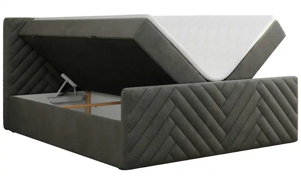 - Lieferumfang / mitgeliefertes ZubehörBasaltgraues Polsterbett mit Bettkasten 140x200 cm