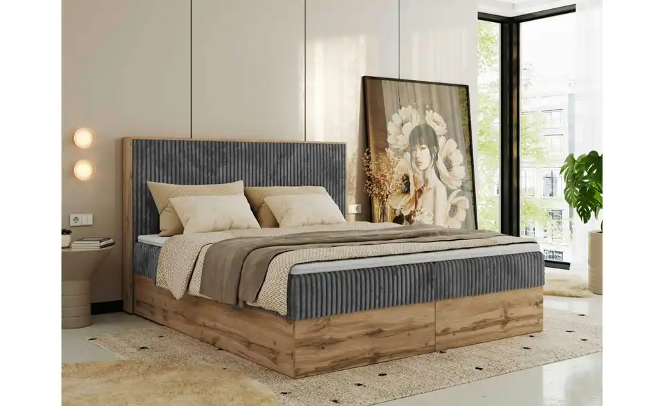 - Lieferumfang / mitgeliefertes ZubehörDunkelgraues Polsterbett mit Bettkasten 160x200 cm