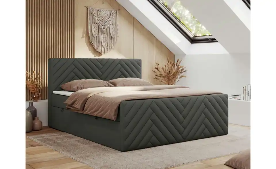 - Lieferumfang / mitgeliefertes ZubehörAnthrazitfarbenes Polsterbett mit Bettkasten 180x200 cm