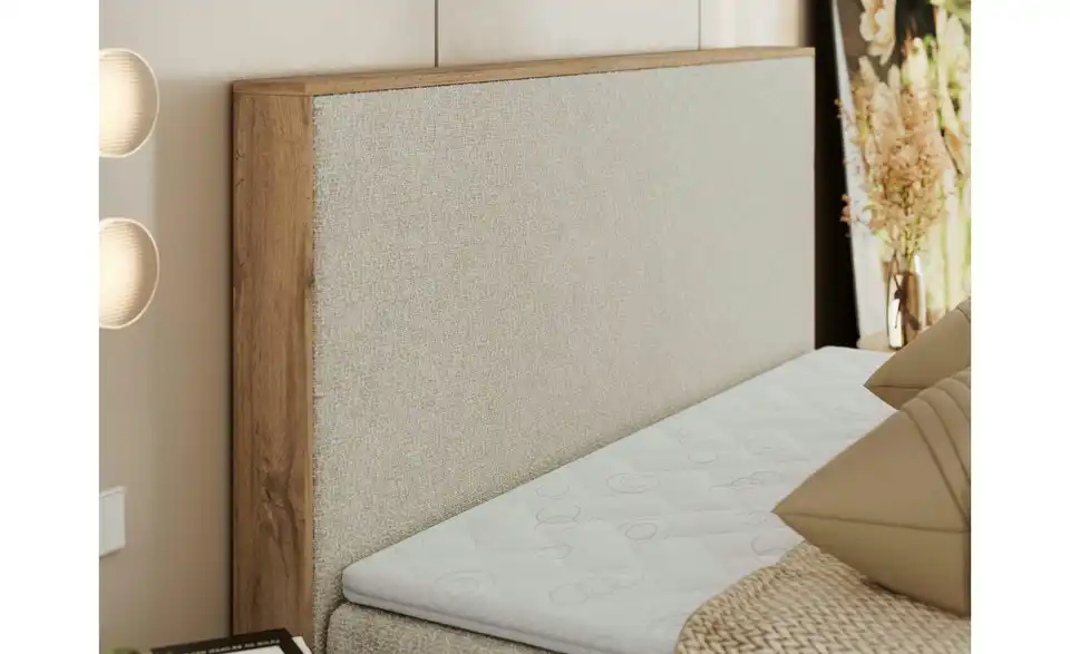 - Lieferumfang / mitgeliefertes ZubehörHellbeiges Polsterbett mit Bettkasten 160x200 cm