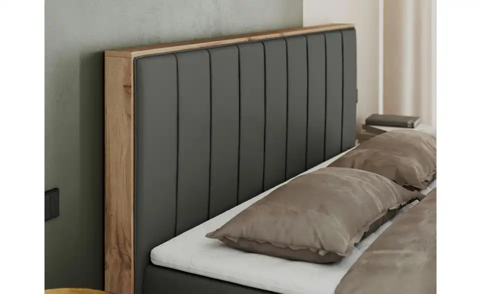 - Lieferumfang / mitgeliefertes ZubehörAnthrazitfarbenes Polsterbett mit Bettkasten 160x200 cm