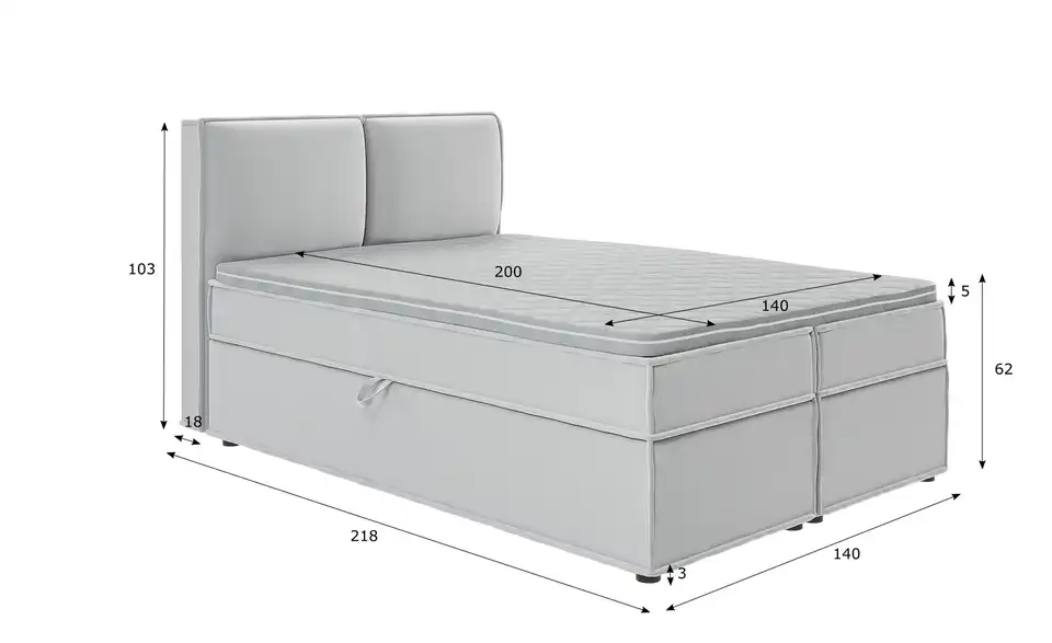 - MontagehinweiseDer Kunde muss die beiden Teile zusammenbauen und den Kopfteil zusammen mit dem Bettkasten montieren.