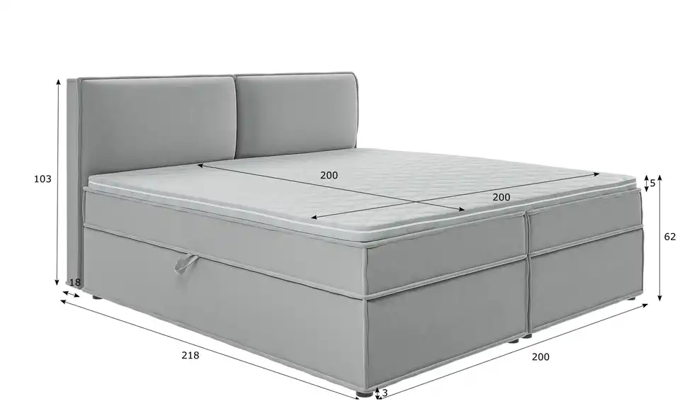 - MontagehinweiseDer Kunde muss die beiden Teile zusammenbauen und den Kopfteil zusammen mit dem Bettkasten montieren.