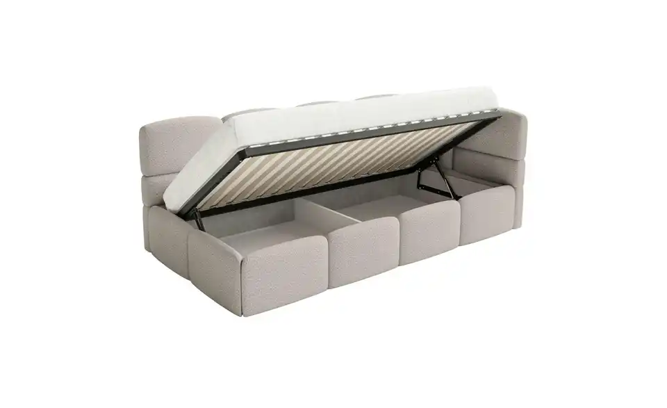 - Ausstattung / Funktioninnen liegender BettkastenBettkastenöffnung am Fußteilmit Gasdruckfeder