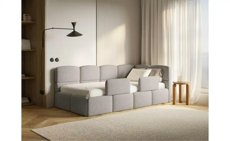 - Lieferumfang / mitgeliefertes ZubehörPolsterliege 90x200 mit Bettkasten und Rausfallschutz