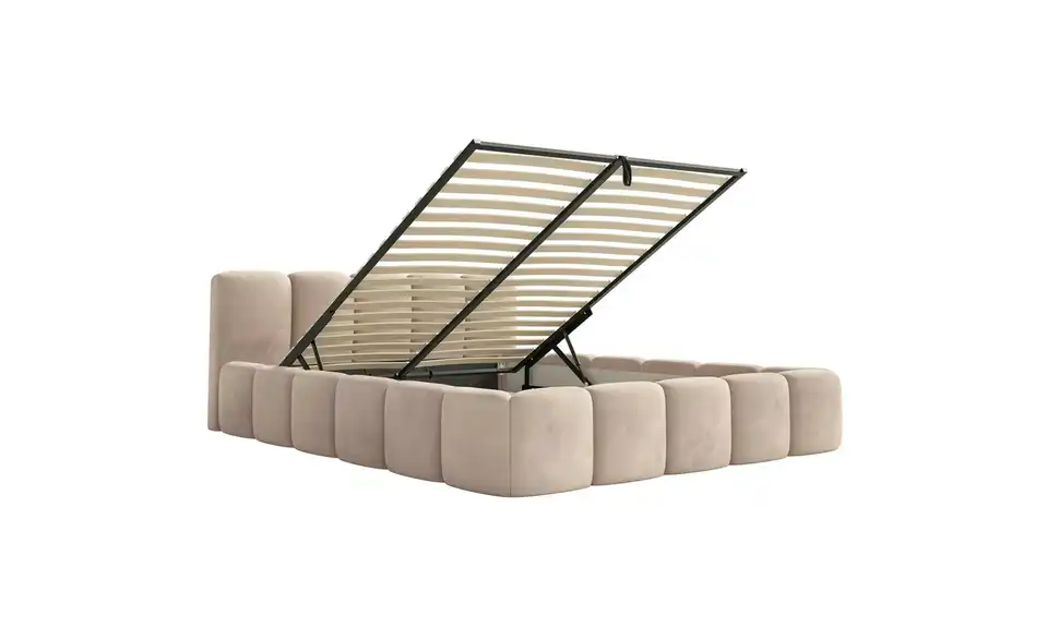 - Ausstattung / Funktioninnen liegender BettkastenBettkastenöffnung am Fußteilmit Gasdruckfeder