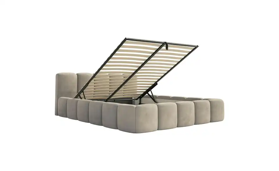 - Ausstattung / Funktioninnen liegender BettkastenBettkastenöffnung am Fußteilmit Gasdruckfeder