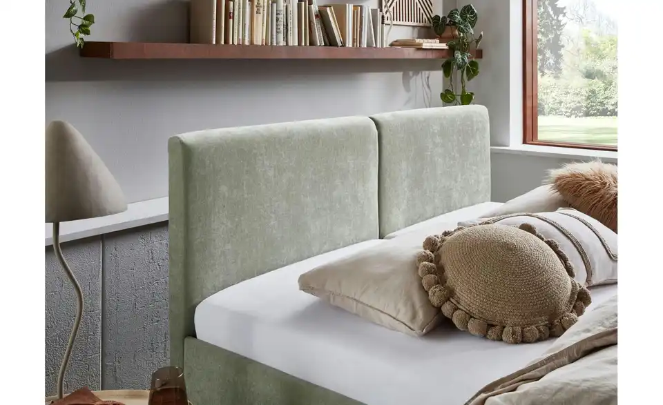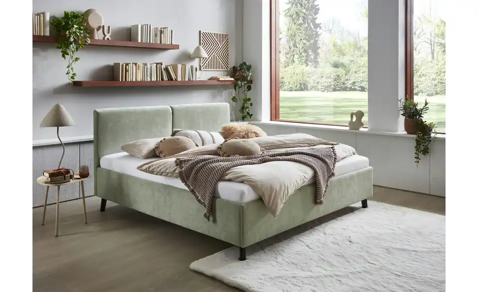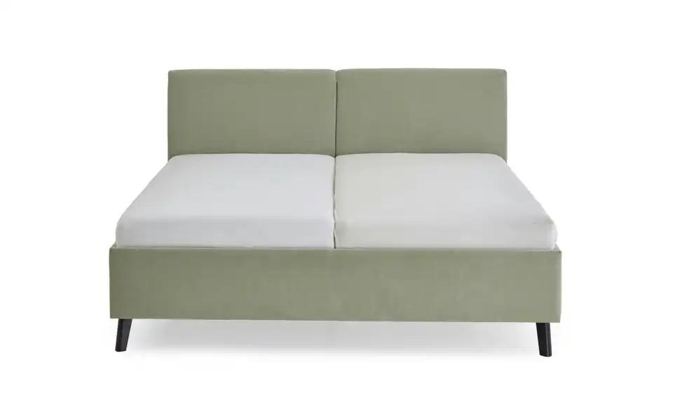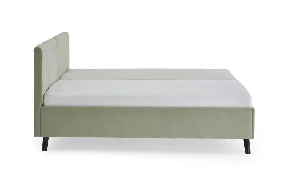 - Lieferumfang / mitgeliefertes ZubehörHellgrünes Polsterbett 180x200 cm mit Holzfüßen, schwarz