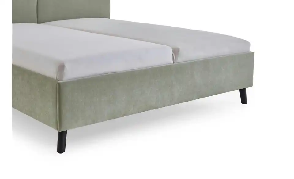 - Lieferumfang / mitgeliefertes ZubehörHellgrünes Polsterbett 160x200 cm mit Holzfüßen, schwarz