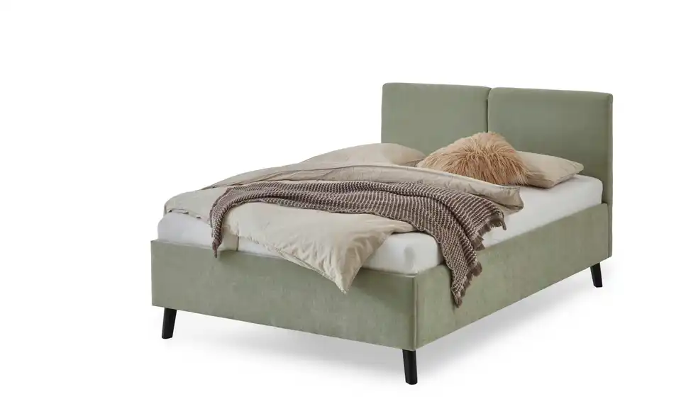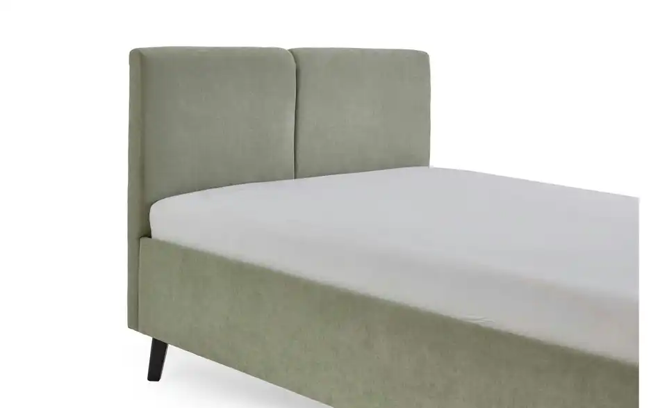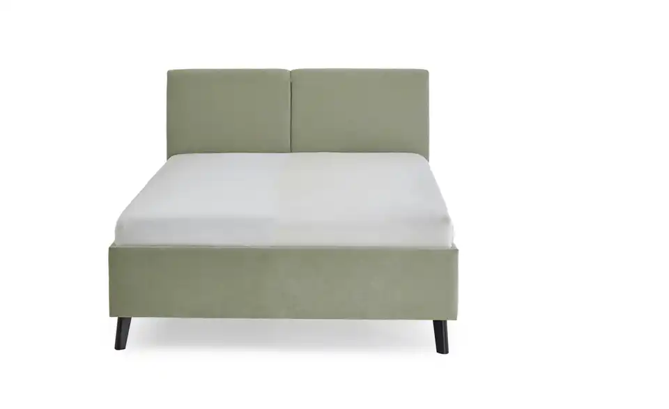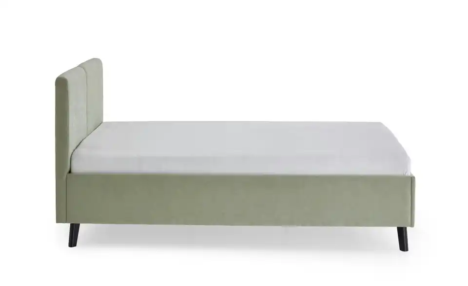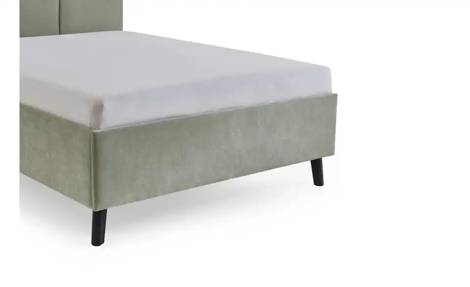 Hellgrünes Polsterbett 140x200 cm mit Holzfüßen, schwarz