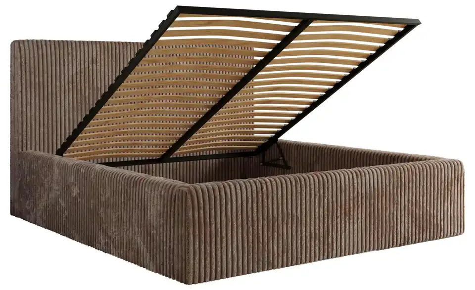 - Lieferumfang / mitgeliefertes ZubehörBraunes Polsterbett mit Bettkasten 180x200 cm