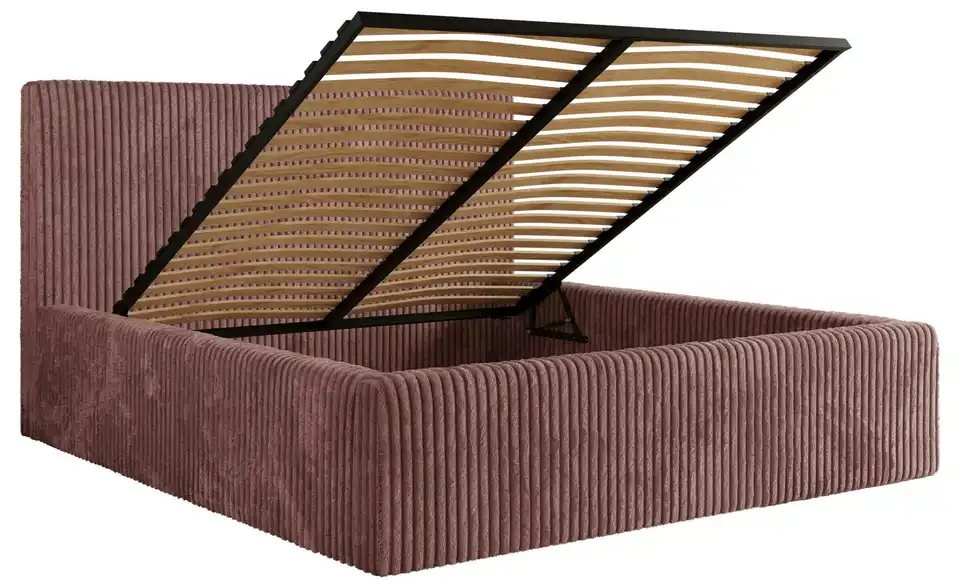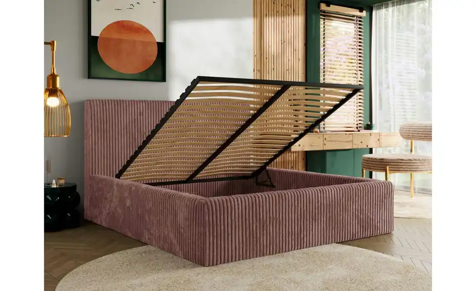 - Lieferumfang / mitgeliefertes ZubehörRosa Polsterbett mit Bettkasten 200x200 cm