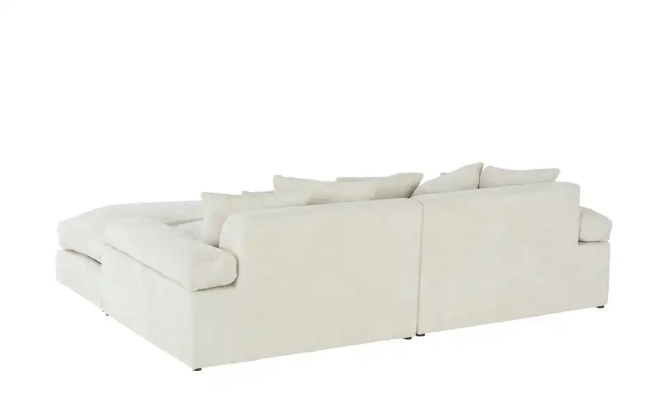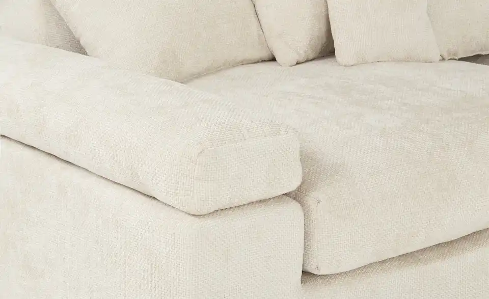 Dieses Ecksofa lädt mit seinen dicken Polsterkissen zum Entspannen ein. Sieben Zierkissen, zwei breite Armlehnen und eine extra große Ottomane sorgen für ein Plus an Gemütlichkeit. Machen Sie es sich bequem und fügen Sie eigene Dekodecken und -Kissen hinzu. Der einfarbige Bezug ist kombinationsfreudig und sogar auf der Rückseite des Sofas zu finden. So können Sie das Ecksofa auch mittig im Raum oder von der Wand abgerückt platzieren. Entscheiden Sie sich nur noch für Ihre Lieblingsfarbe und wählen Sie zwischen trendigem Cord und kuschelweichem Chenille-Stoff.Lieferung & Versand