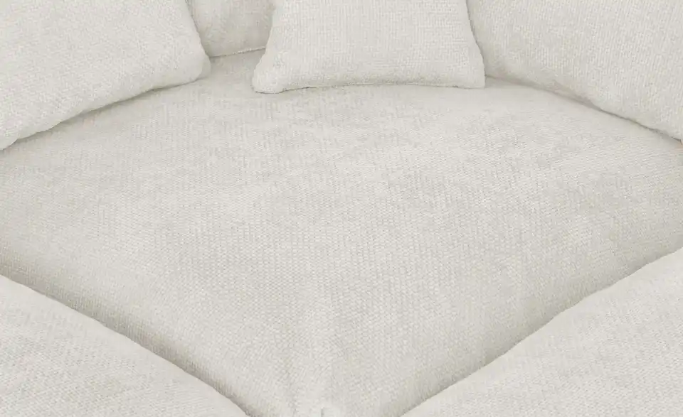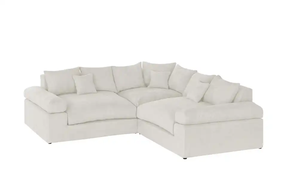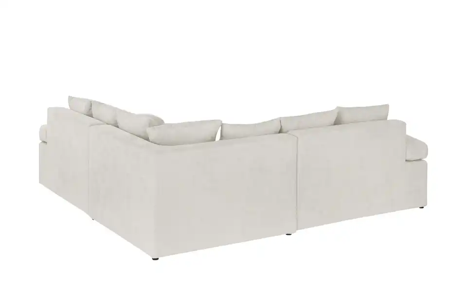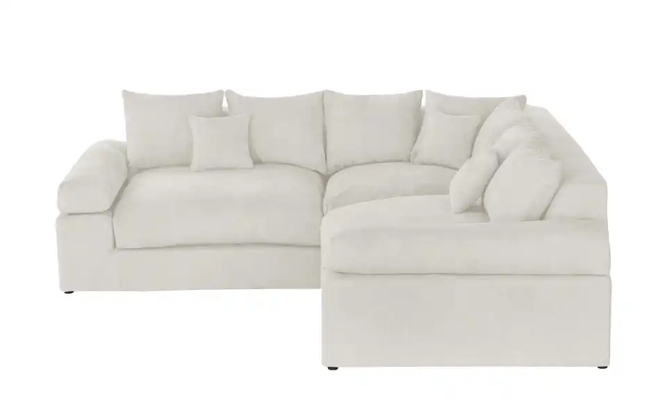 Dieses Ecksofa lädt mit seinen dicken Polsterkissen zum Entspannen ein. Zehn Zierkissen und zwei breite Armlehnen sorgen für ein Plus an Gemütlichkeit. Machen Sie es sich bequem und fügen Sie eigene Dekodecken und -Kissen hinzu. Der einfarbige Bezug ist kombinationsfreudig und sogar auf der Rückseite des Sofas zu finden. So können Sie das Ecksofa auch mittig im Raum oder von der Wand abgerückt platzieren. Entscheiden Sie sich nur noch für Ihre Lieblingsfarbe und wählen Sie zwischen trendigem Cord, kuschelweichem Chenille-Stoff und pflegeleichtem Webstoff.Lieferung & Versand