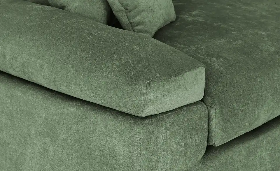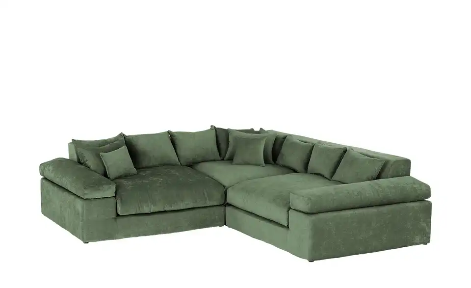 Dieses Ecksofa lädt mit seinen dicken Polsterkissen zum Entspannen ein. Zwölf Zierkissen und zwei breite Armlehnen sorgen für ein Plus an Gemütlichkeit. Machen Sie es sich bequem und fügen Sie eigene Dekodecken und -Kissen hinzu. Der einfarbige Bezug ist kombinationsfreudig und sogar auf der Rückseite des Sofas zu finden. So können Sie das Ecksofa auch mittig im Raum oder von der Wand abgerückt platzieren. Entscheiden Sie sich nur noch für Ihre Lieblingsfarbe und wählen Sie zwischen trendigem Cord, kuschelweichem Chenille-Stoff und pflegeleichtem Webstoff.Lieferung & Versand