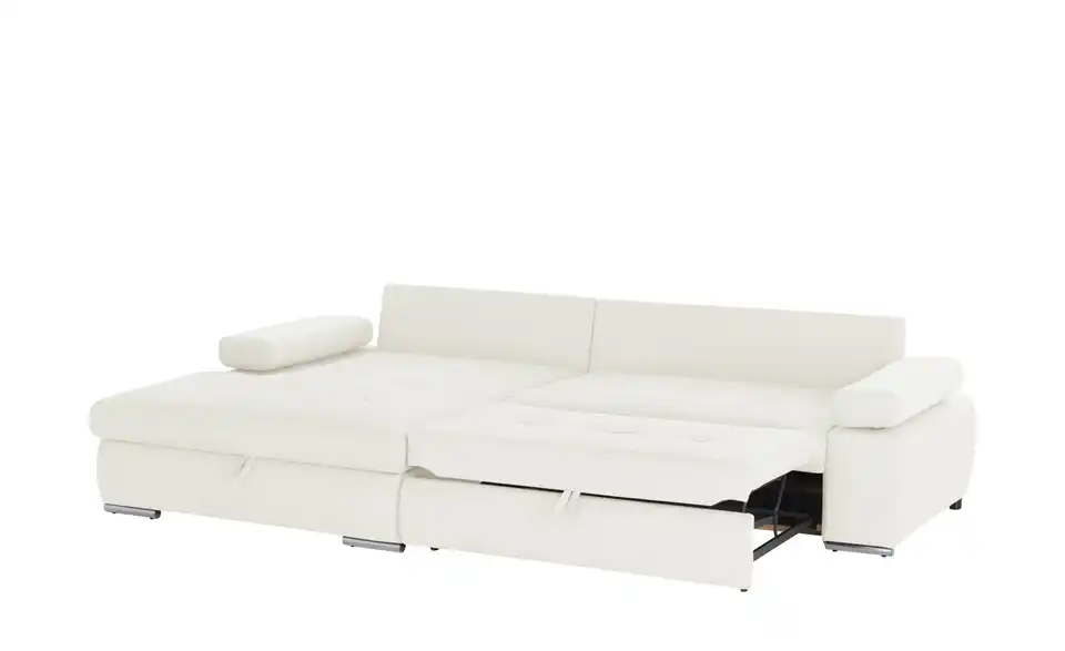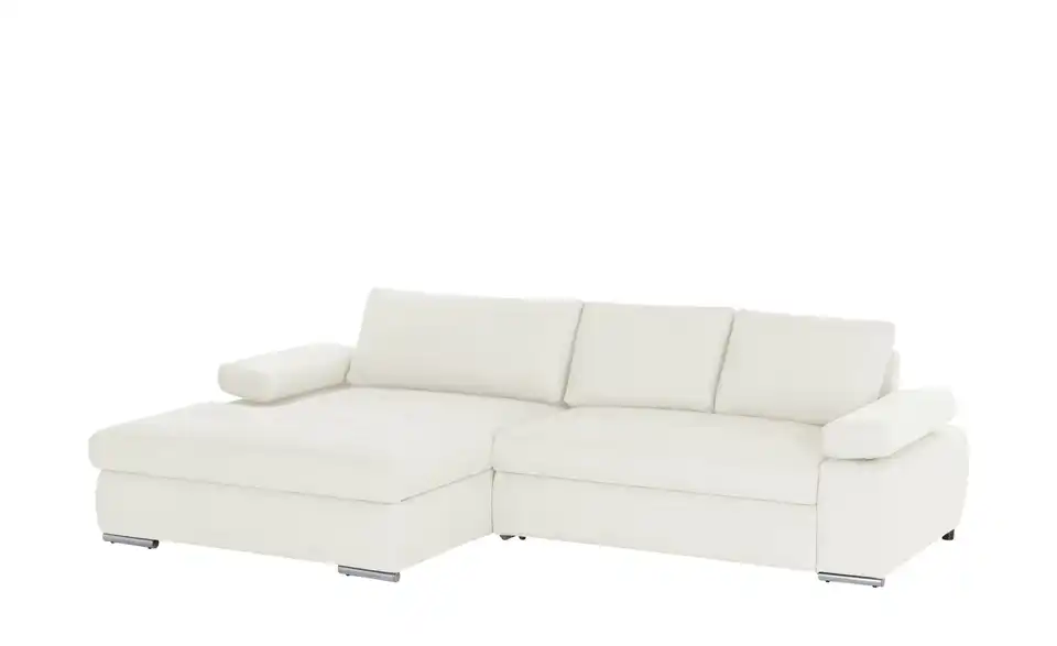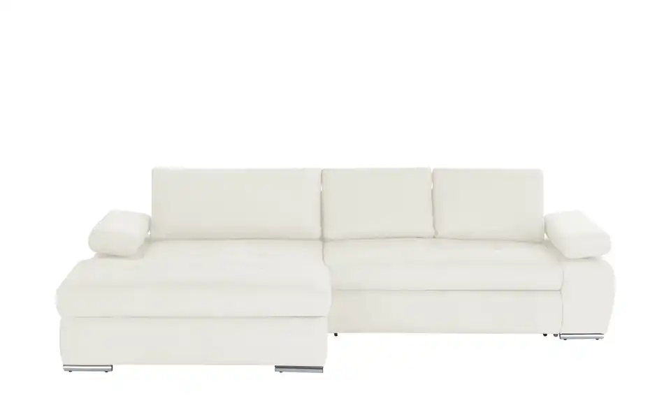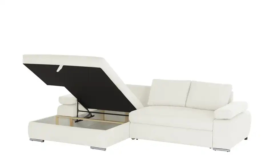 Das Ecksofa Ibby mit seiner weitläufigen L-Form bietet viel Platz zum Entspannen und Erholen. Die Sitzfläche ist mit einer Wellenunterfederung ausgestattet. Darauf befindet sich eine Polsterung aus Schaumstoff, die sich auch im Rückenbereich und den Armlehnen wiederfindet. Somit ist ein angenehmes Sitzen und Liegen gewährleistet. Für noch mehr Komfort sind drei Rückenkissen im Lieferumfang enthalten. Die Armlehnen lassen sich individuell verstellen. Ein weiteres Highlight von Ibby ist die Schlaffunktion: Ziehen Sie Ibby einfach zum Gästebett aus. Im großzügigen Bettkasten unter der Sitzfläche können Sie zum Beispiel Bettwäsche für den Besuch verstauen. Ibby ist rundum mit einem einfarbigen Stoff bezogen. So können Sie Ibby auch frei in den Wohnraum stellen. Wählen Sie aus verschiedenen strapazierfähigen Stoffbezügen und bestimmen Sie die Gestaltung Ihres Sofas ganz einfach selbst.Lieferung & Versand