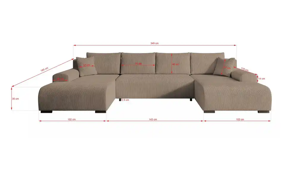 - Lieferumfang / mitgeliefertes ZubehörEcksofa, Kissen, Aufbauanleitung